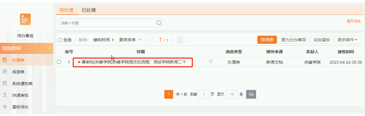 2、点击需要审核的通知文件的标题,进入审批界面。