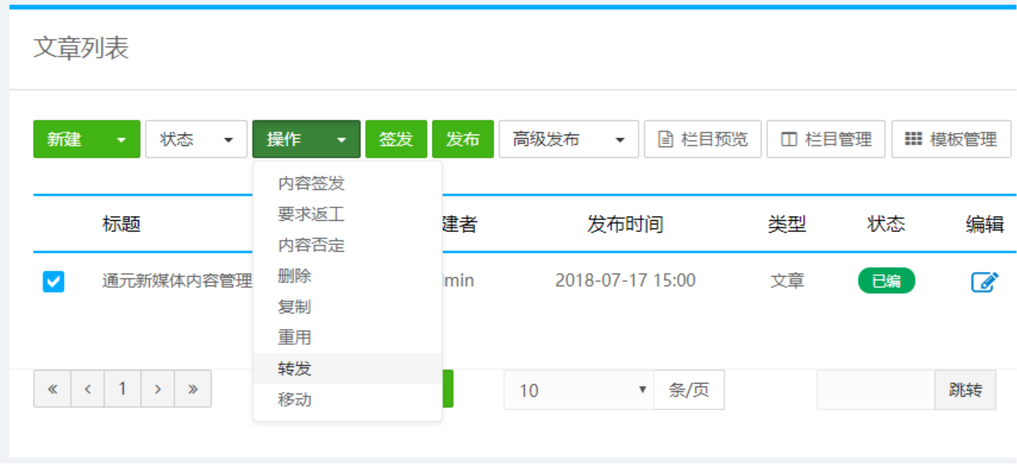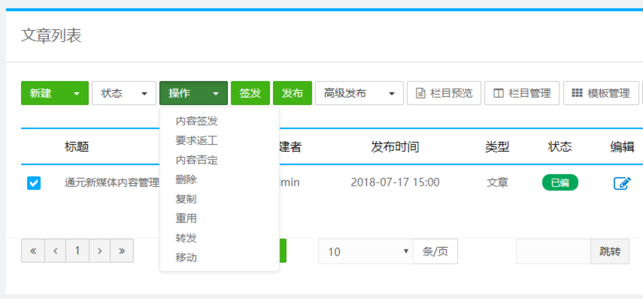 允许编辑人员编辑并发布文章,查看并编辑处于新稿、已编、已签、已发、已撤、回收站等多种状态的文章内容。