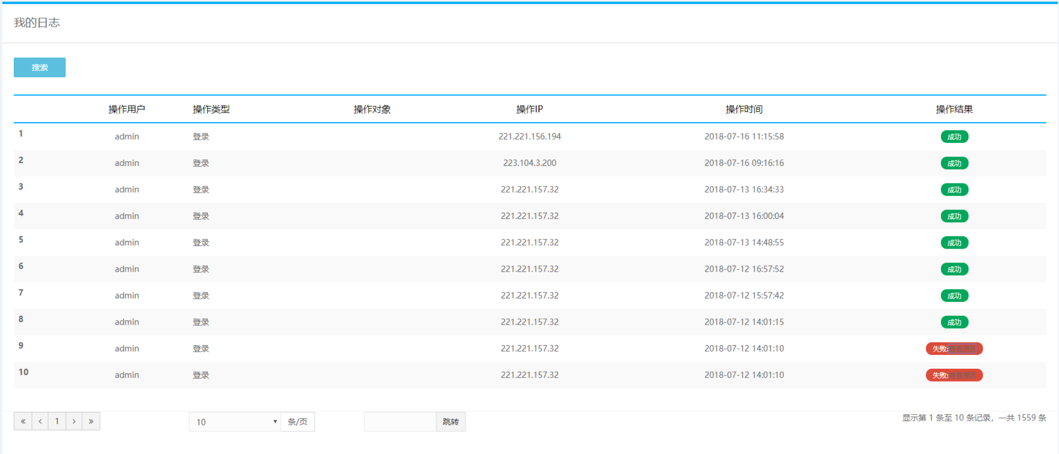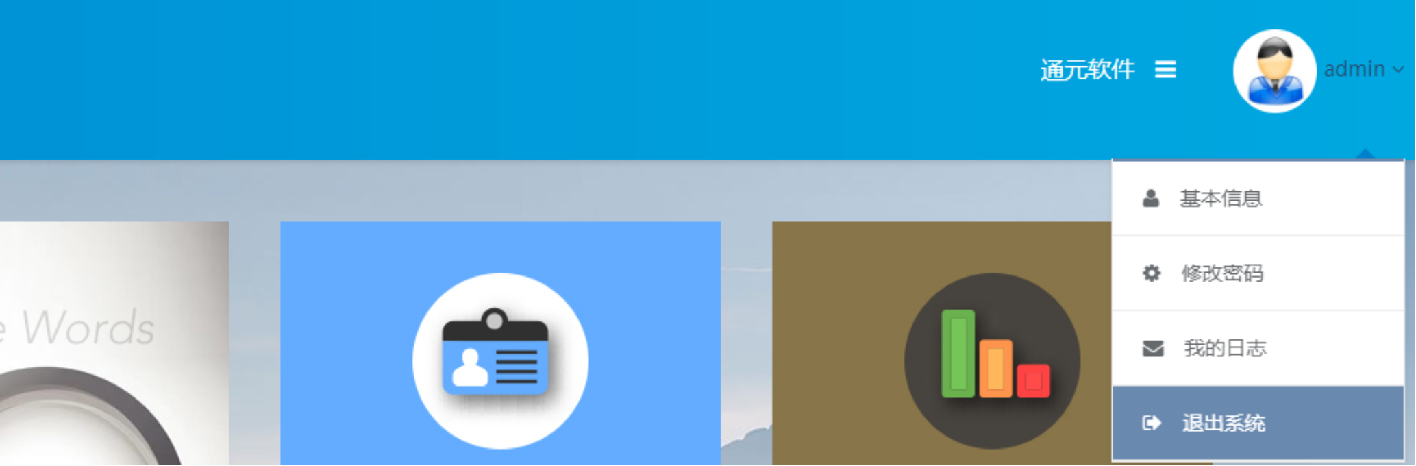 登录系统后,可查看、修改个人信息,点击右侧用户名,可显示用户基本信息、修改密码、我的日志及退出系统选项。