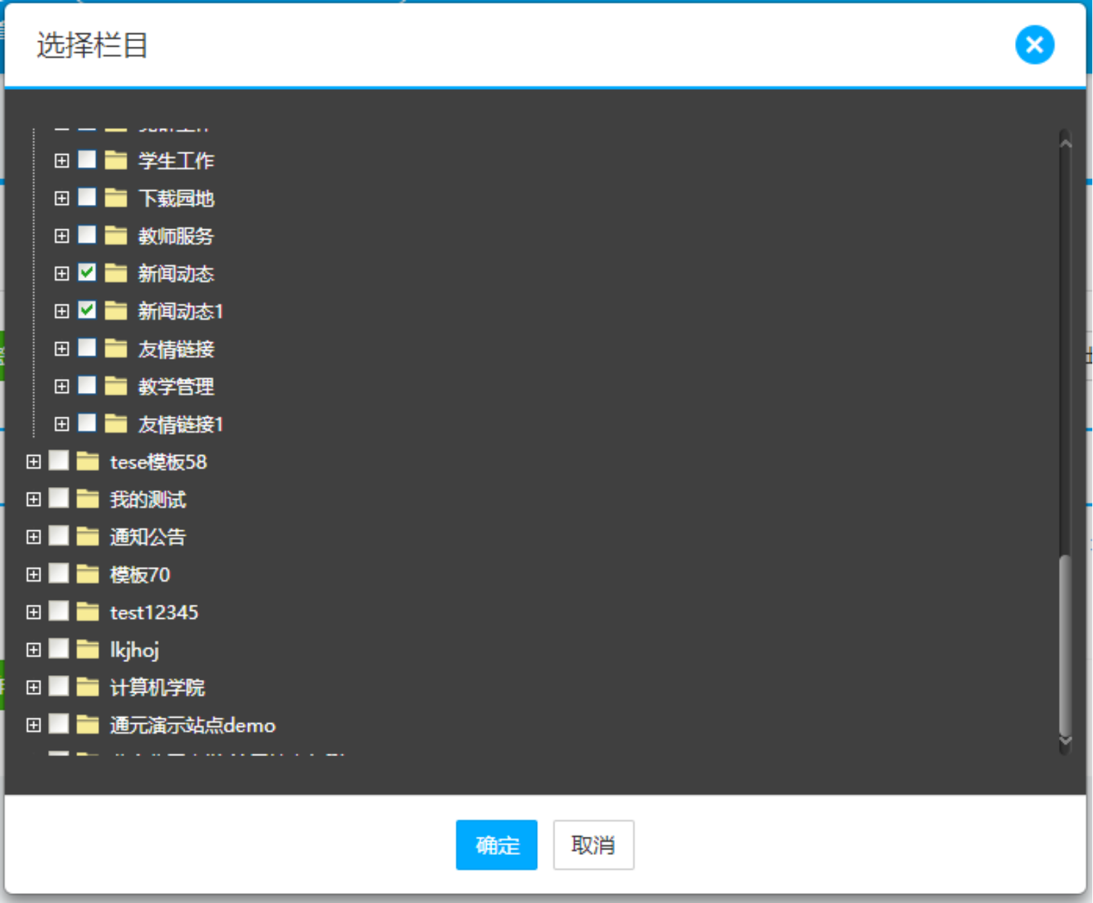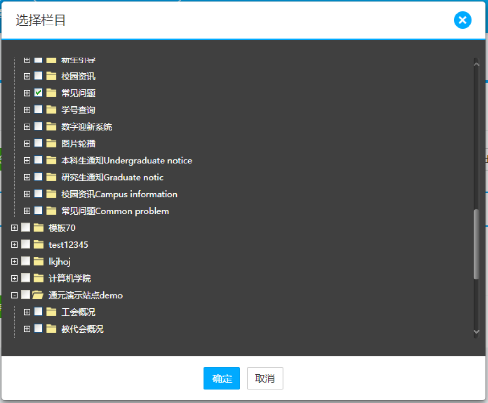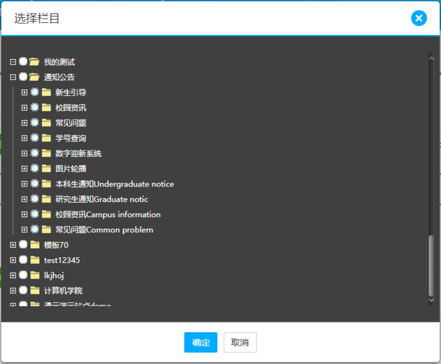 点击左侧站点名称,右键【全部展开】,选择目标栏目,如图: