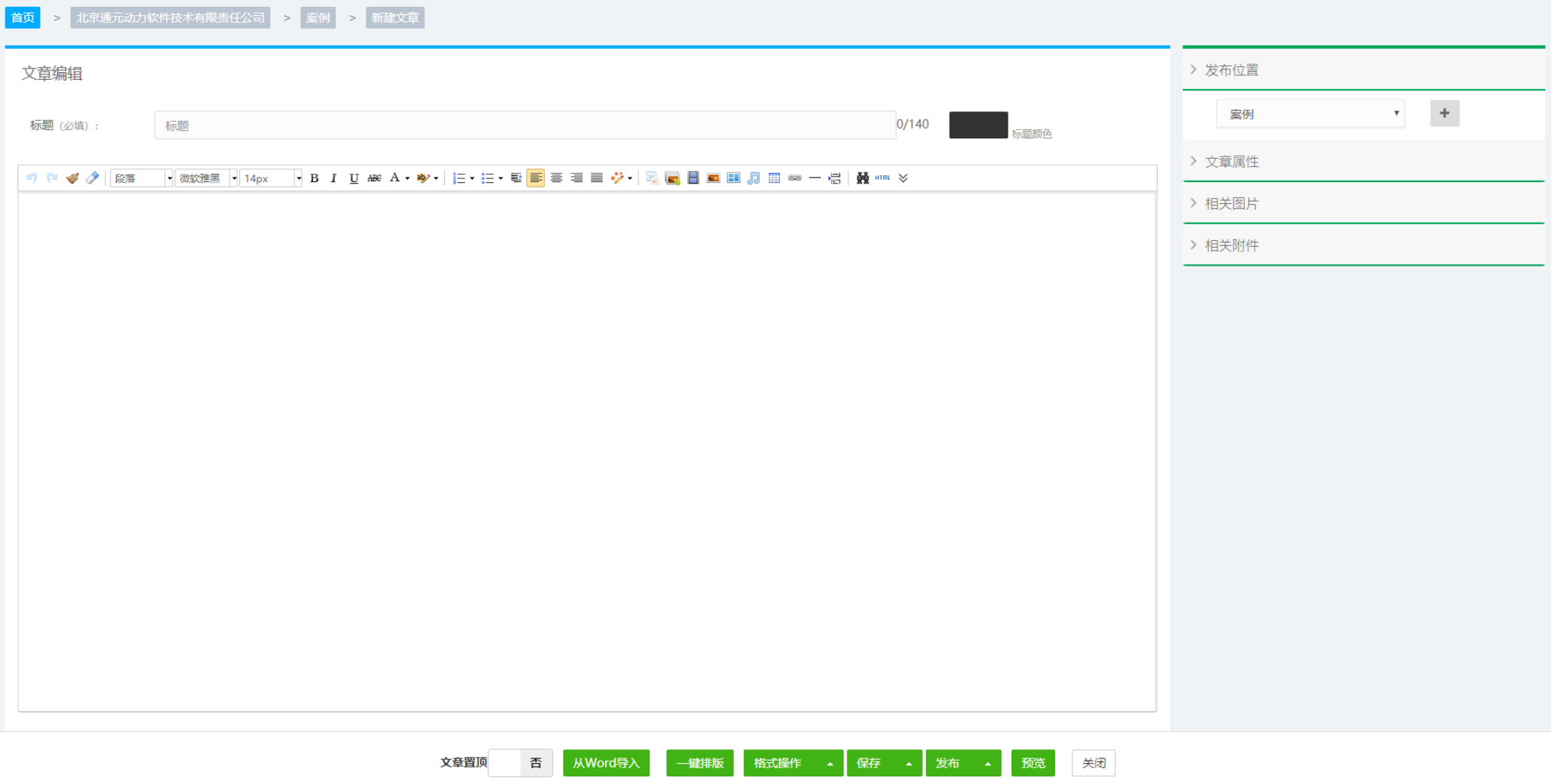 在新建文章界面,用户可以快速选择发布栏目,系统会记录最近发布的栏目供用户选择。