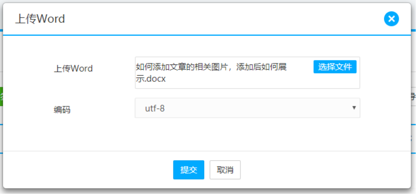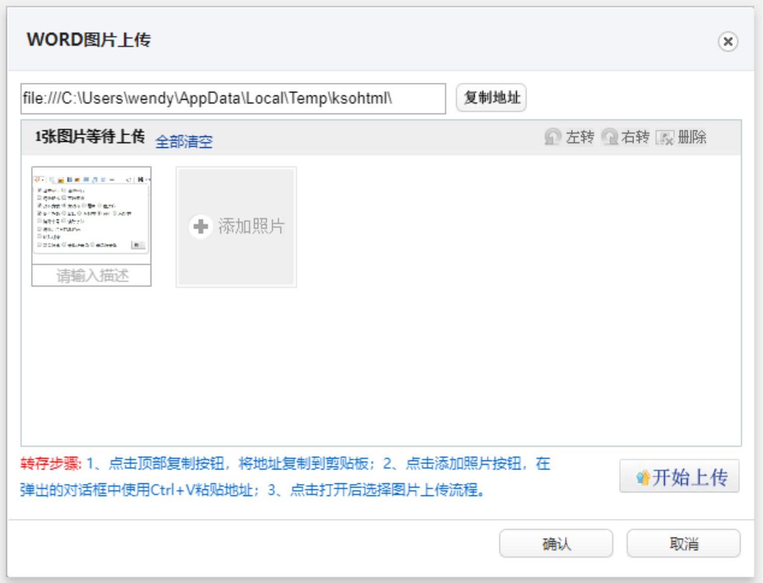 word图片上传:word中复制粘贴图文混排的内容,通过此按钮自动上传。