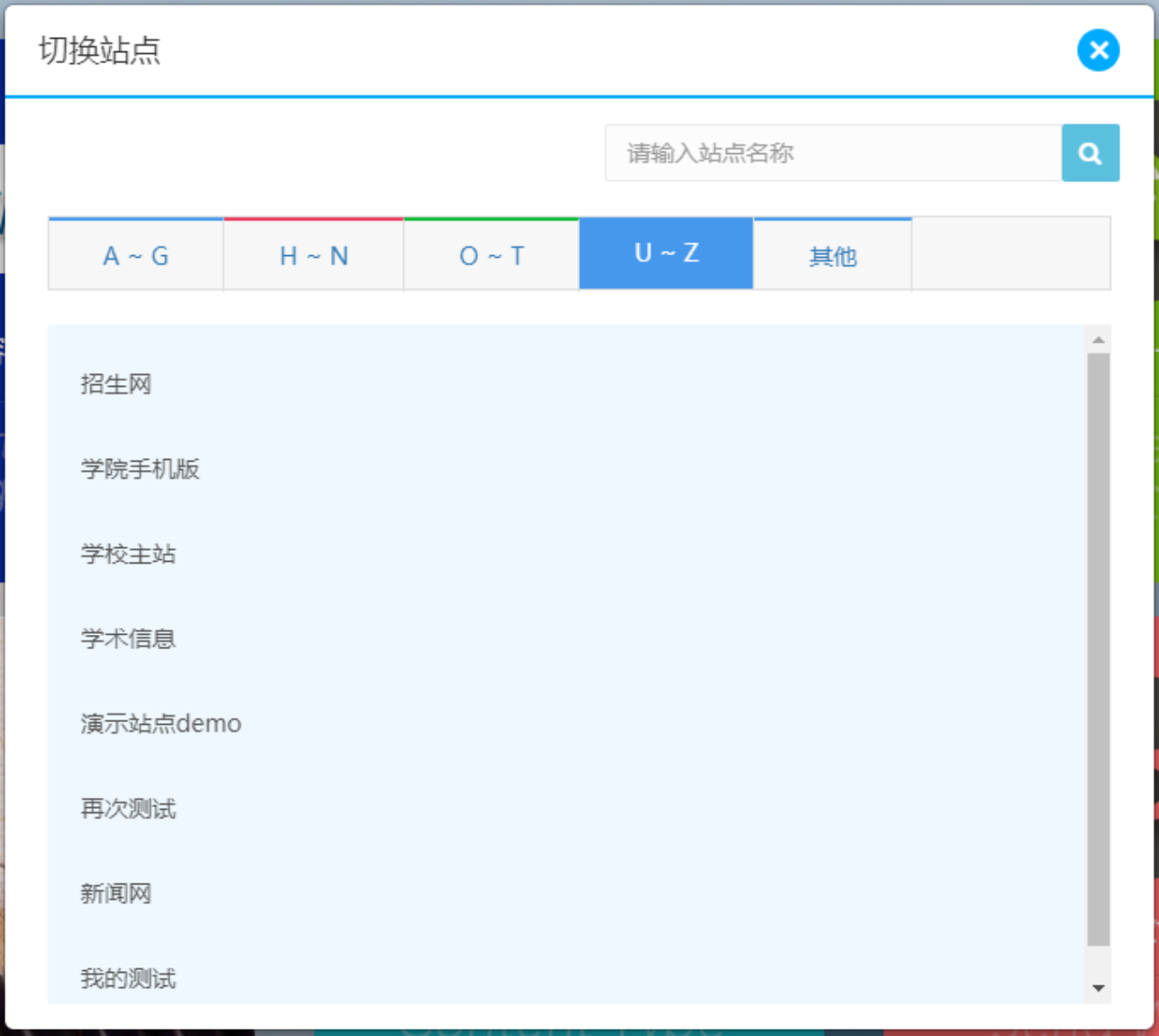 顶部主功能区右侧显示当前用户所管理的所有站点,点击