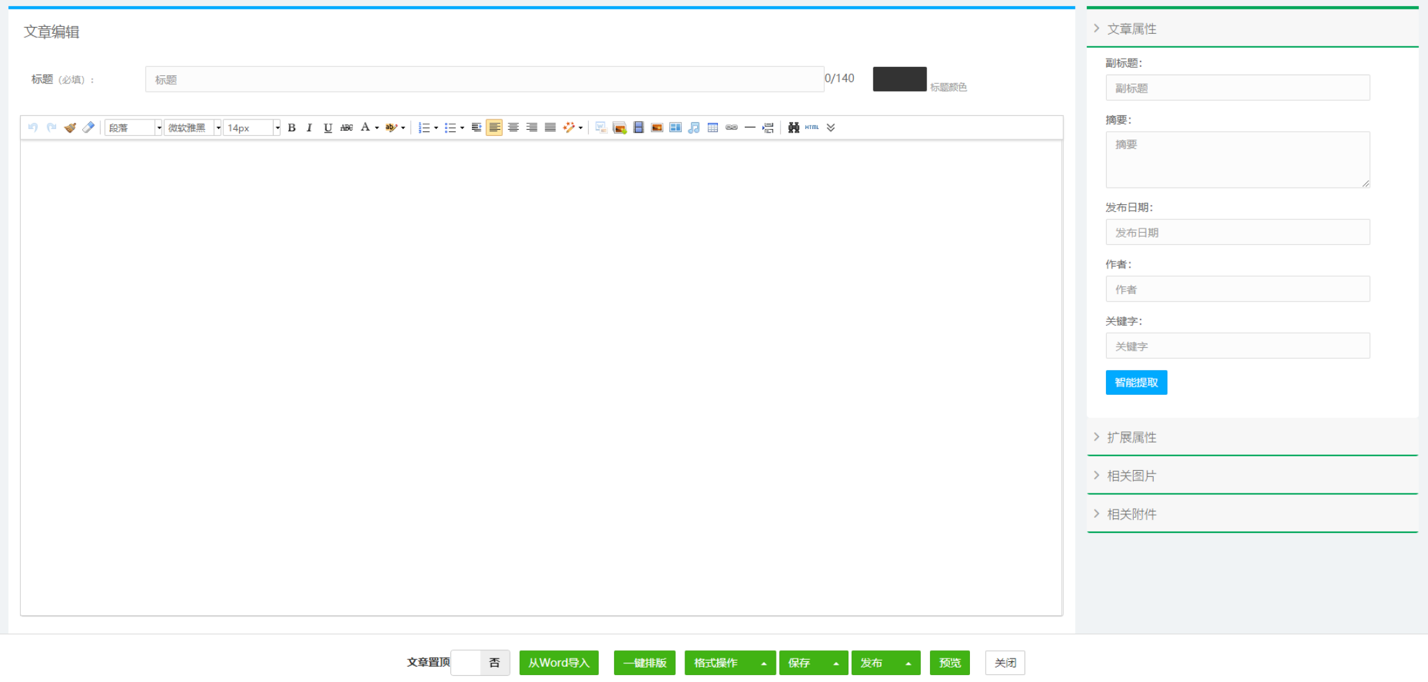 系统支持自动导入本地的word格式文档,将文档名称作为标题,文档的内容作为文章的内容,自动保留原文档格式。